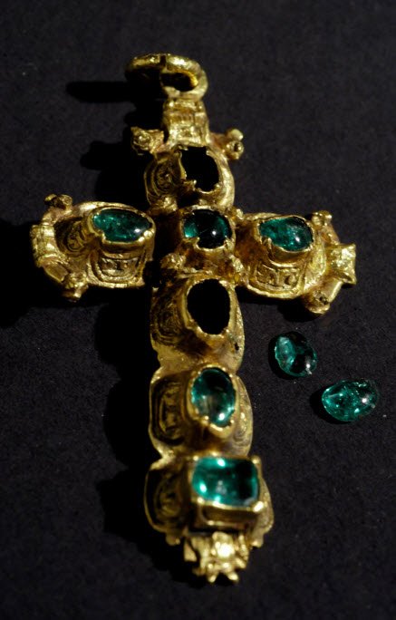 During the Spanish conquest of the New World, vast amounts of emeralds were seized and shipped to Spain. In 1519, Hernán Cortés embarked on his mission to convert the Aztecs in Mexico to Christianity. Upon hearing of ten “ghost” ships off the coast, Aztec Emperor Moctezuma mistook them for the return of gods and commissioned the creation of gifts for the newcomers, including a turquoise mask and a gold necklace set with emeralds and other gemstones. These were presented to Cortés, who later obtained a collection of exceptional emeralds when he looted Tenochtitlan, the Aztec capital. Some of these exquisite emeralds were even set aside as a gift for his future wife, Doña Juana de Zuniga.